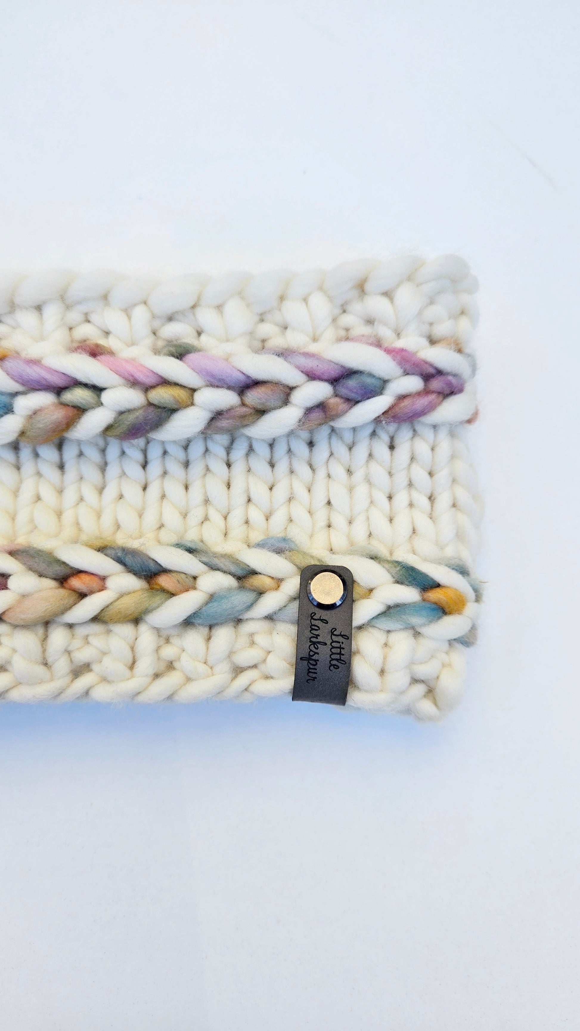 This soft and cozy hand knit headband will keep you warm and stylish during the cold winter months. The colors are eye catching and the wool is so soft. The perfect winter gear!