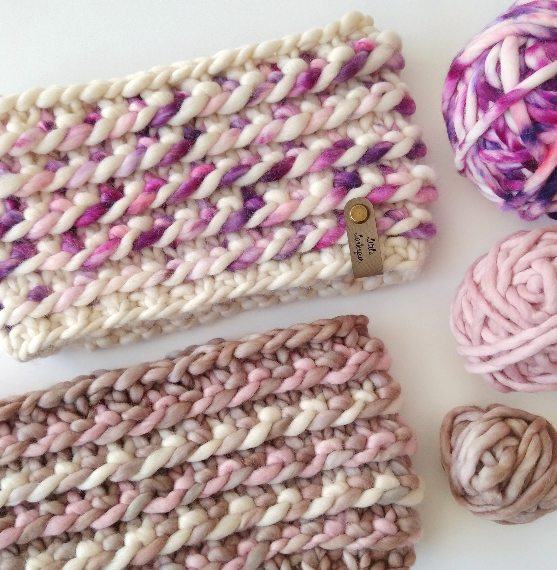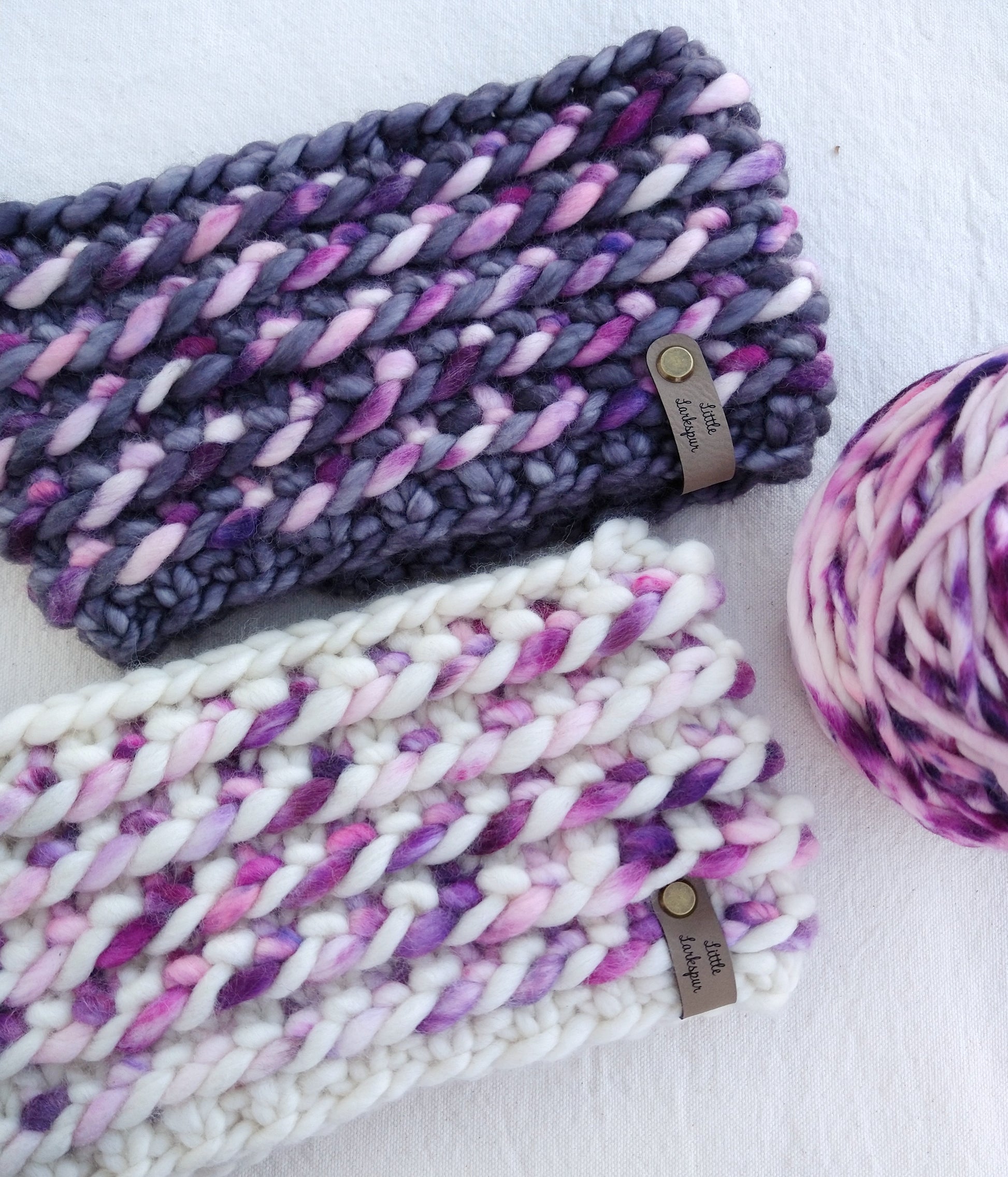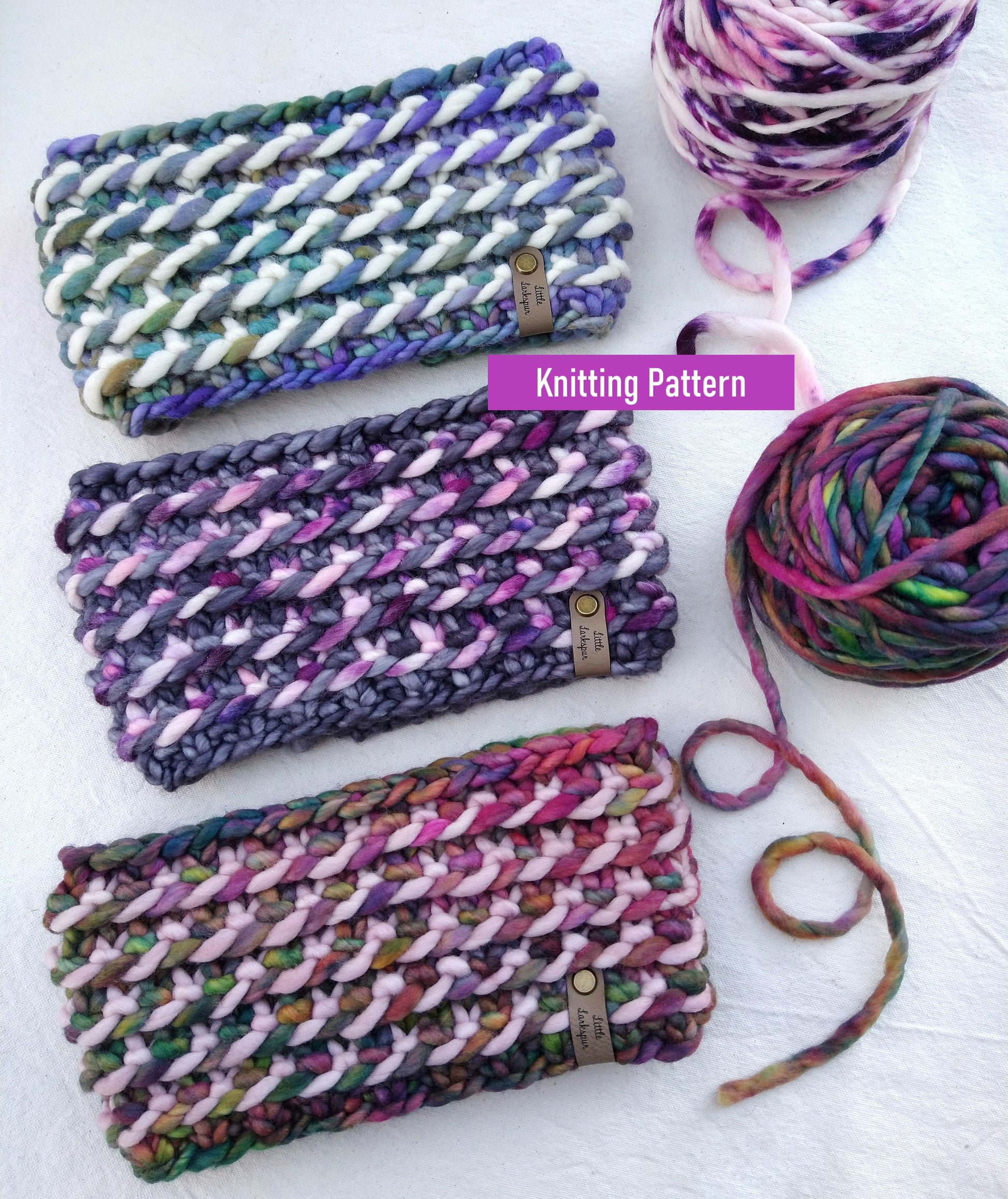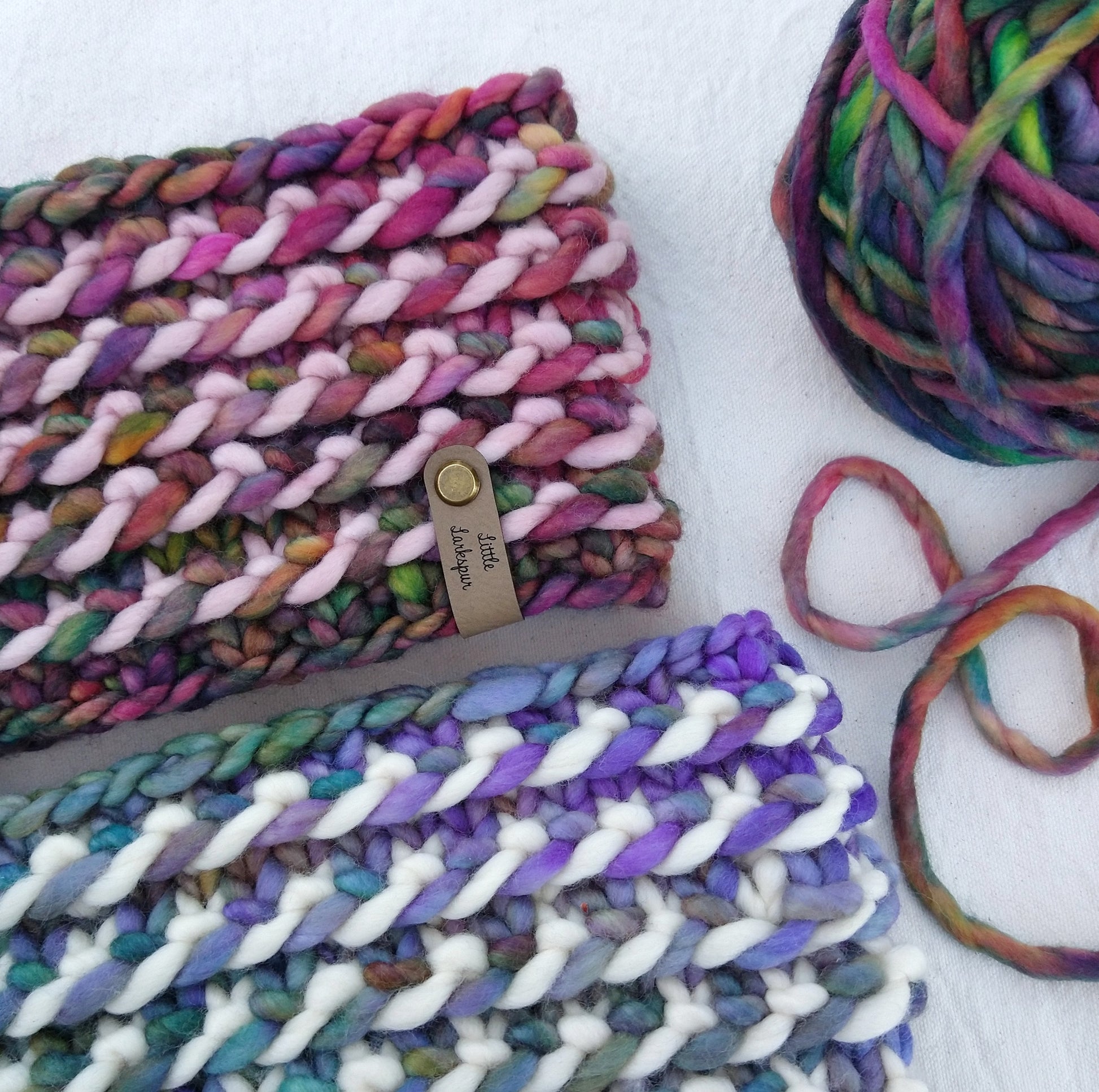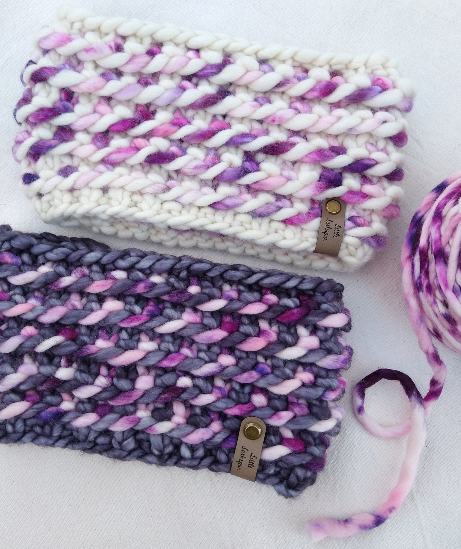 Enjoy mixing and matching different colorways and using up your super bulky scraps!