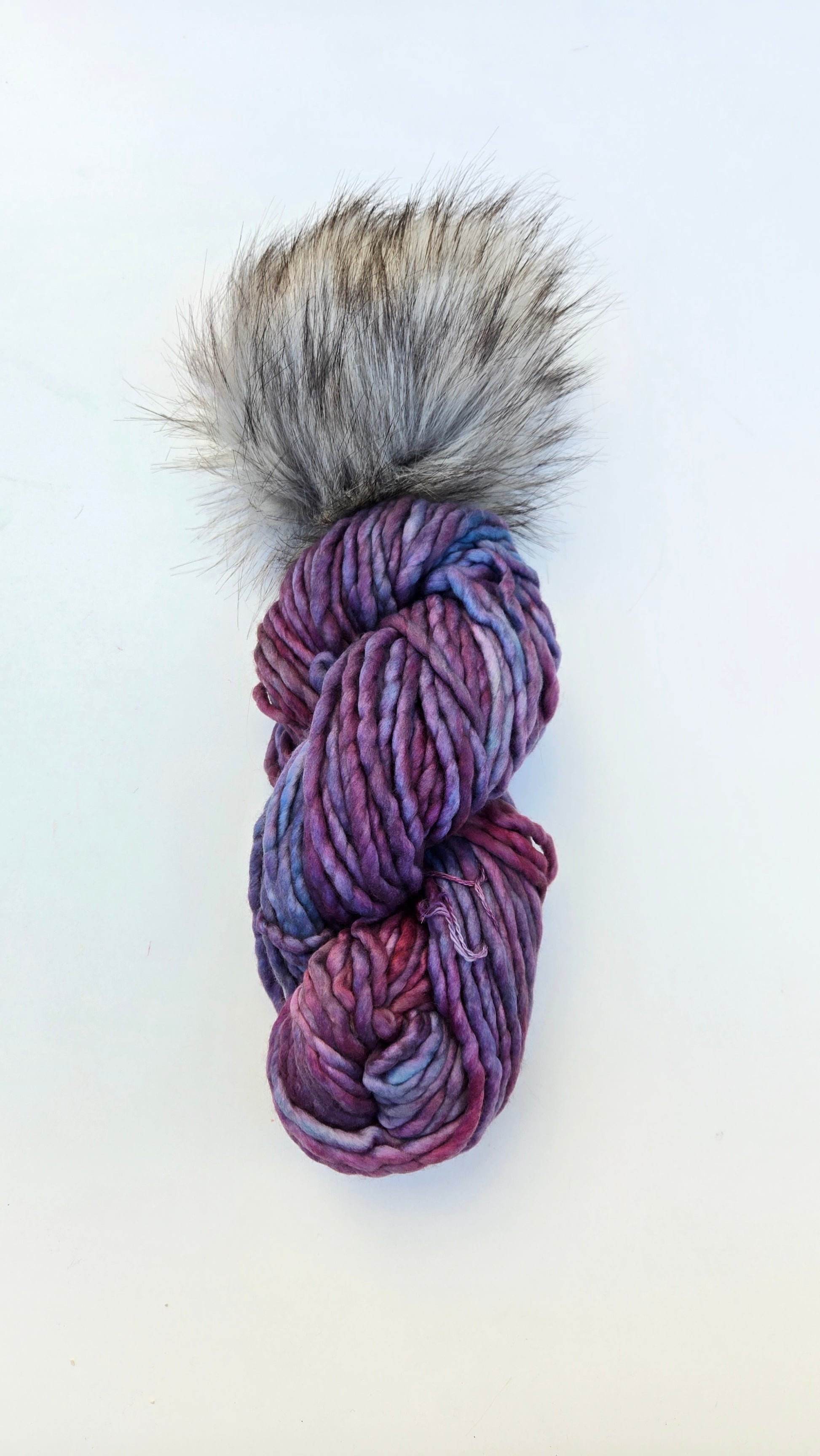 This is a Yarn + Pom KIT for you to knit or crochet a hat (pattern is NOT included, suggestions listed below). Colors may vary from screen to screen. In addition, due to the hand dyed nature of the yarn colors may vary from batch to batch. All photos are taken in natural lighting.